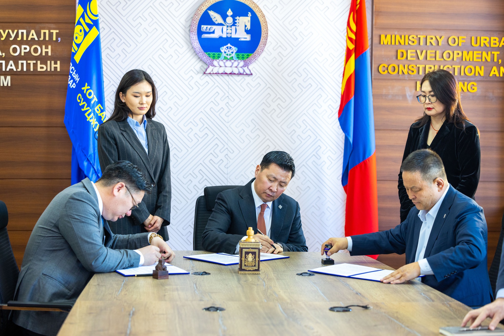 Хот байгуулалт, барилга, орон сууцжуулалтын сайд Э.Бат-Амгалан өнөөдөр /2026.04.09/ барилгын салбарт ажил, хөдөлмөр эрхэлж байгаа нийт алба хаагчдын эрх ашгийг хамгаалах ажлын хүрээнд Барилгын үйлдвэрчний эвлэлүүдийн холбоо, Монголын барилгын нэгдсэн холбооны удирдлагуудтай барилгын салбарын 2026-2028 оны 3 талт хамтын хэлэлцээрийг байгуулж, гарын үсэг зурлаа.